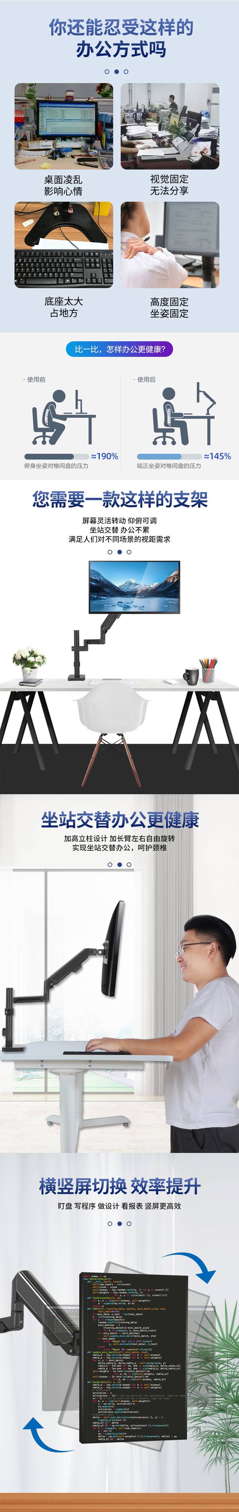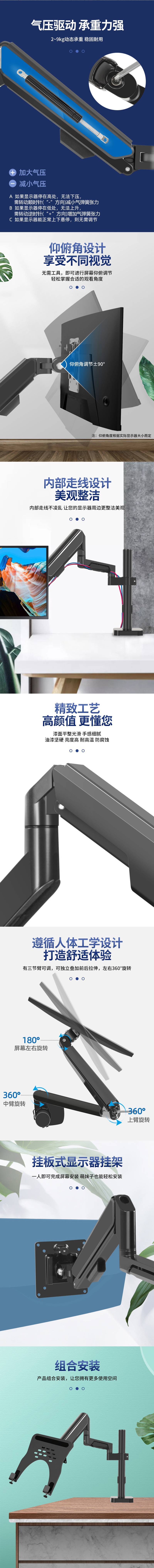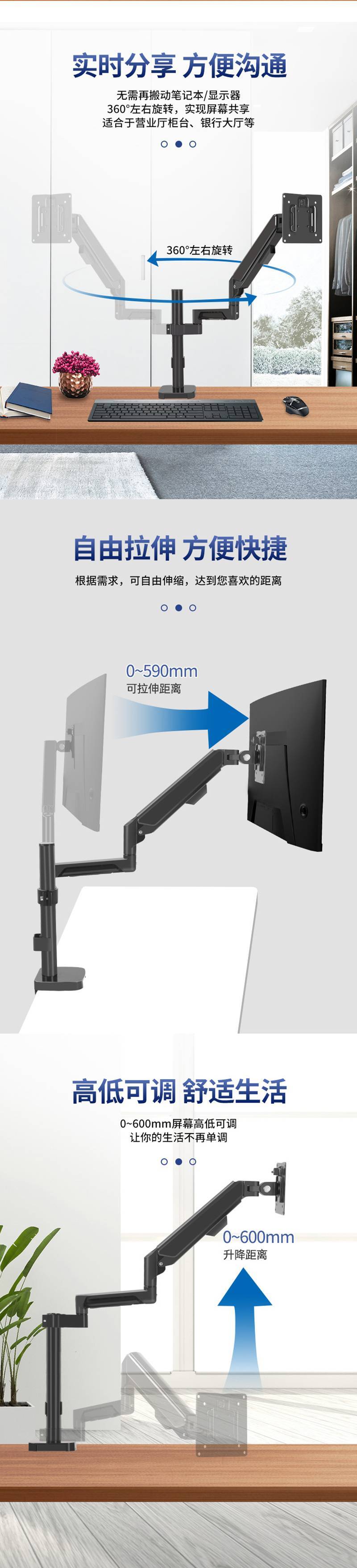 产品名称: 升降万向旋转臂免打孔显示器支架