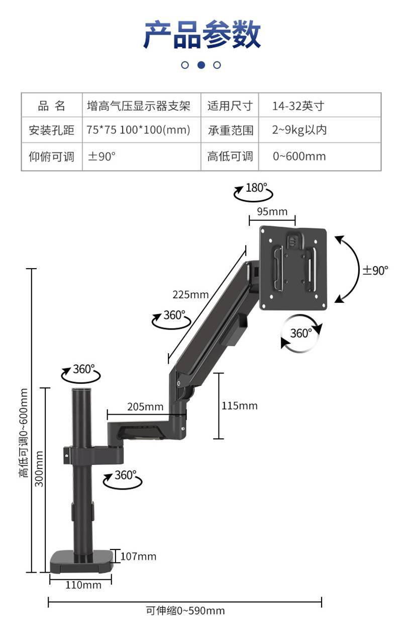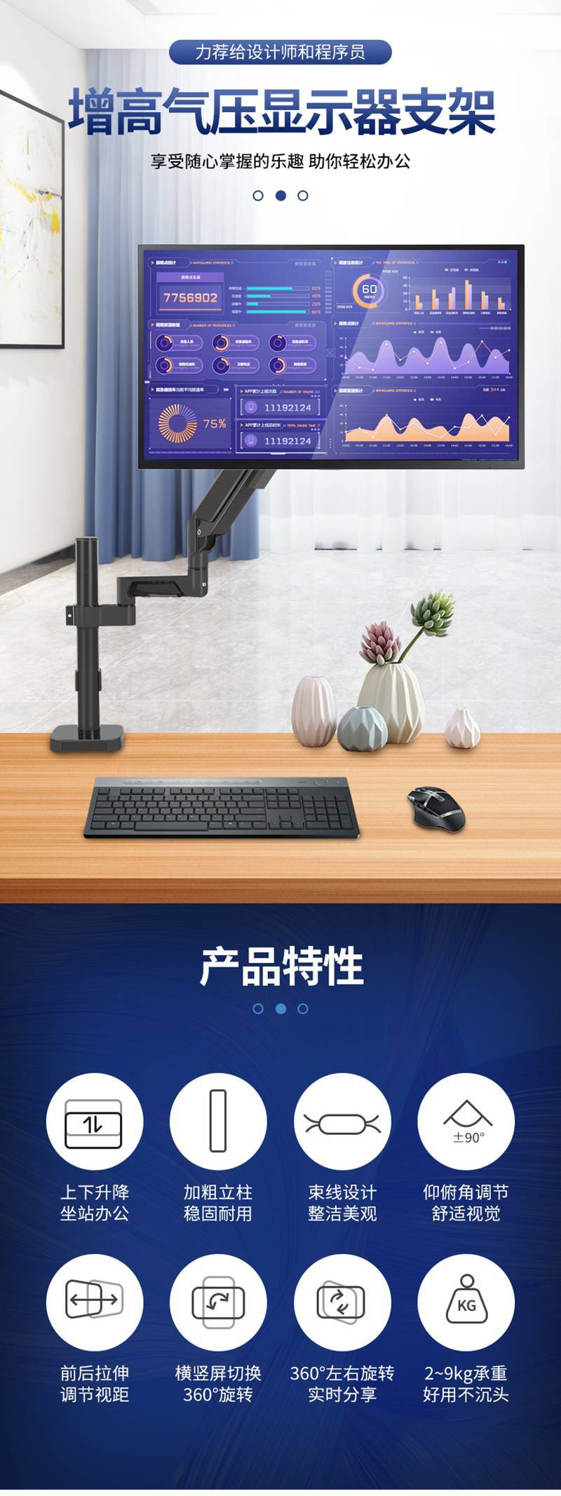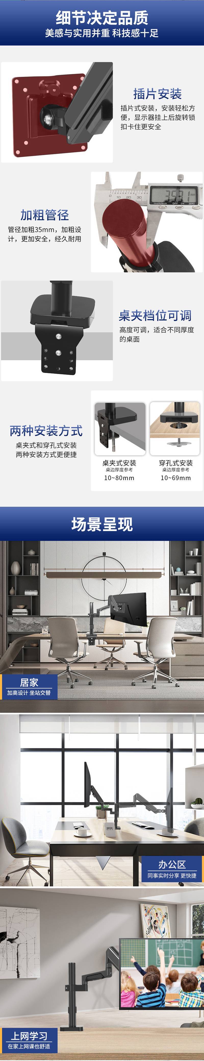 产品名称: 升降万向旋转臂免打孔显示器支架