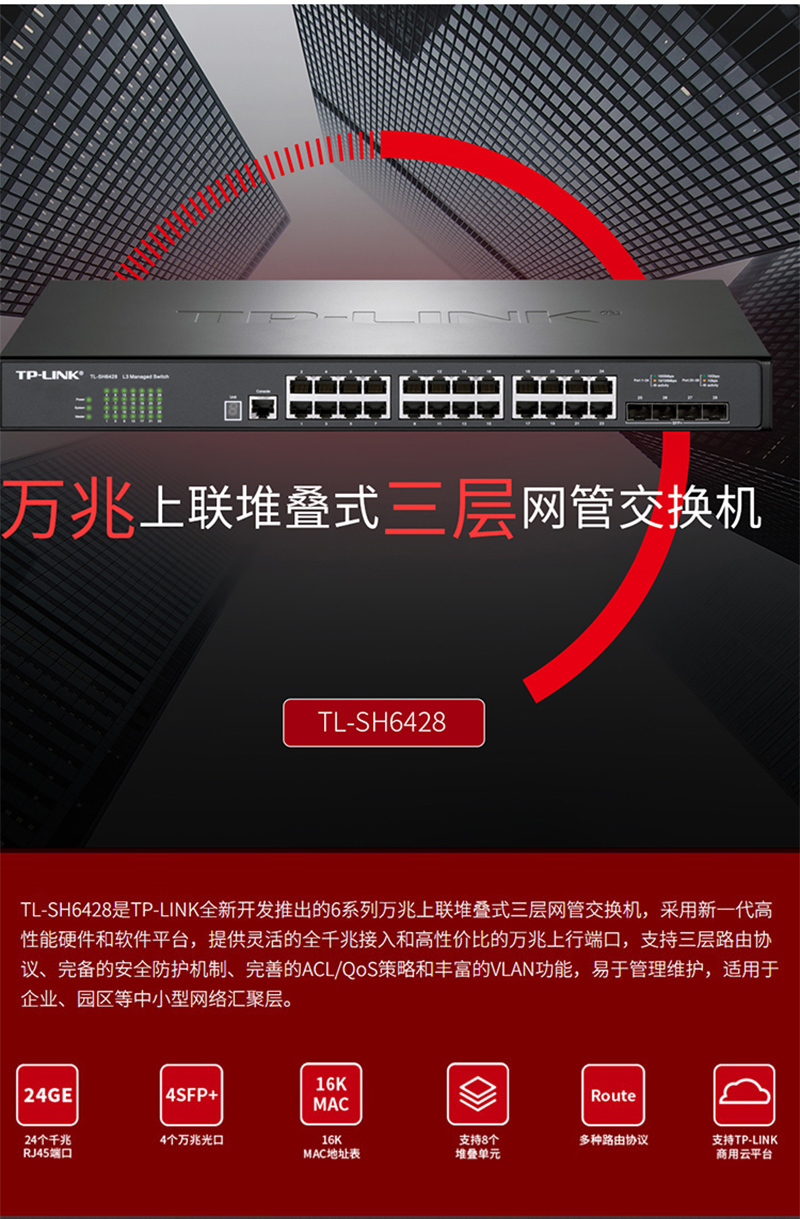 TP-LINK/普联 28口万兆上联堆叠式三层网管交换机 TL-SH6428 1个