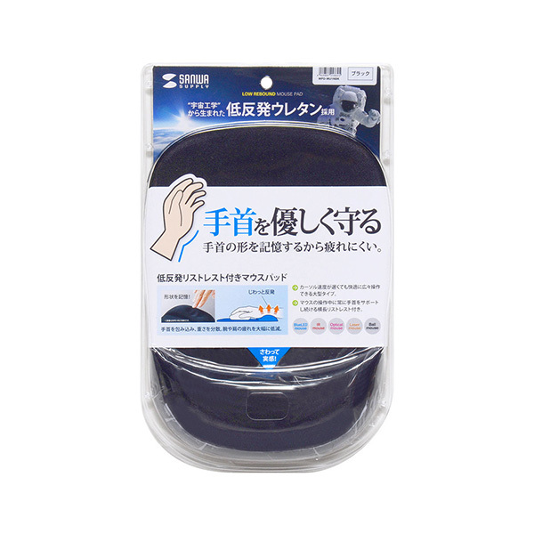 海绵个SANWA/山业MPD-MU1NBK记忆海绵带腕托鼠标垫-黑色
