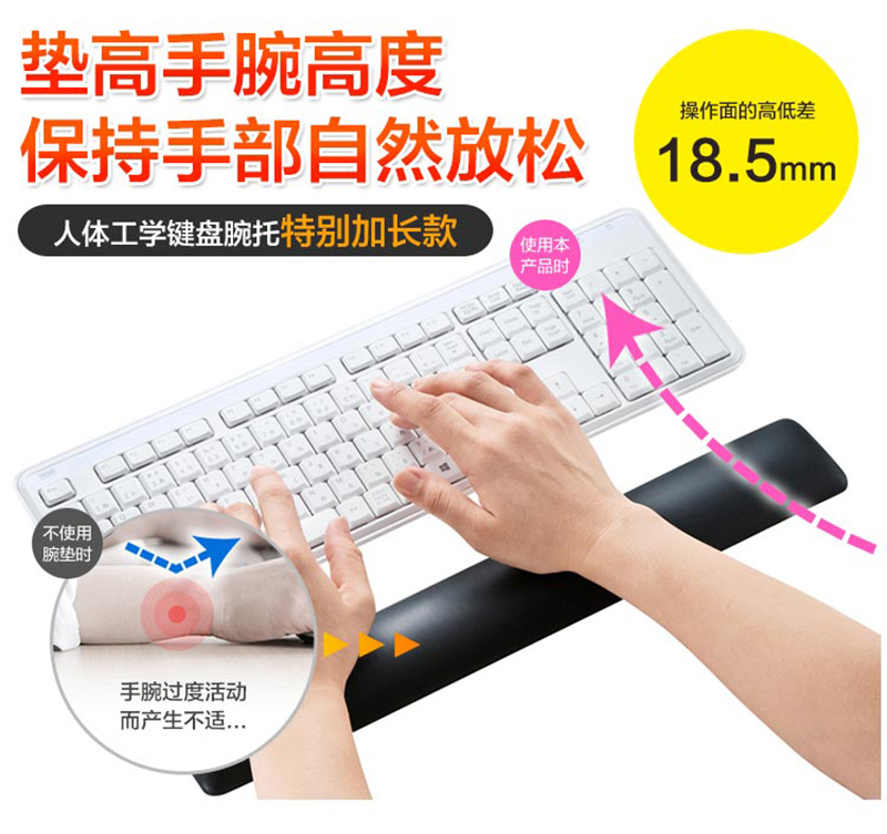 橡胶个SANWA/山业TOK-GELPNXLBKTPU加长版人体工学腕托-黑色