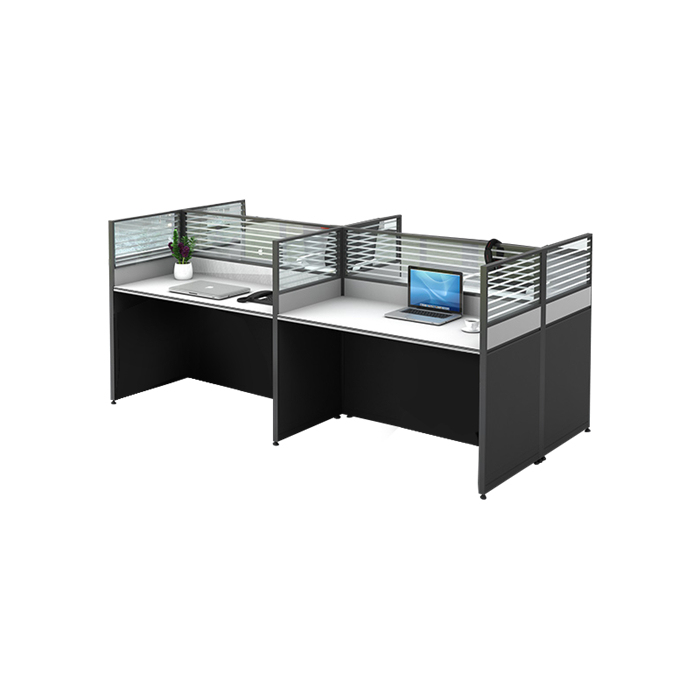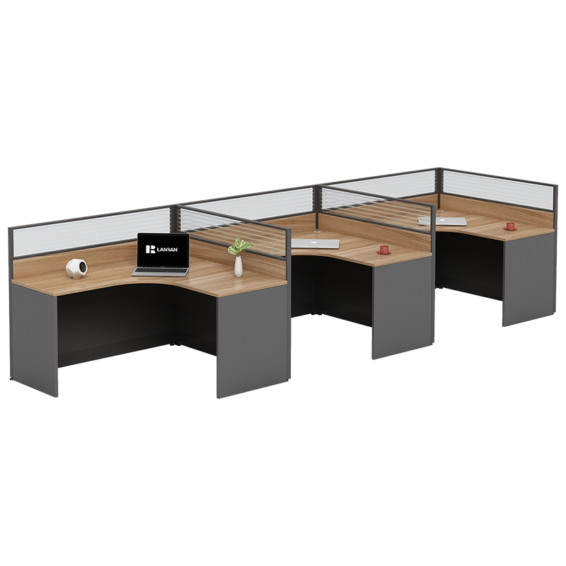 LANRAN/兰冉 王字型四人位职员办公桌椅组合工位 LR-PF4417 尺寸2400×1200×1100mm 有屏风 无线槽 1张