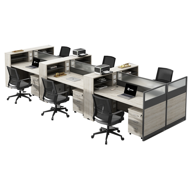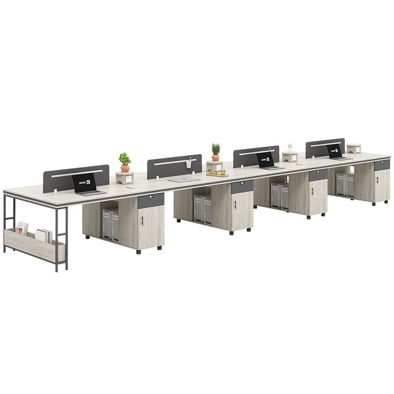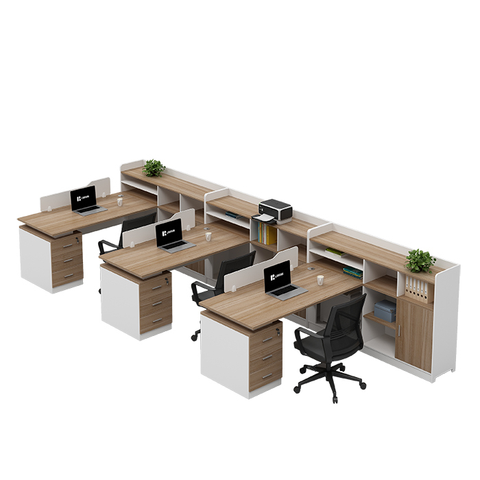 DAILANJIA/黛兰嘉 F型三人位含椅办公桌(右高柜) LR-ZYZ02808 每套含三人位办公桌×1+办公椅×3 1套